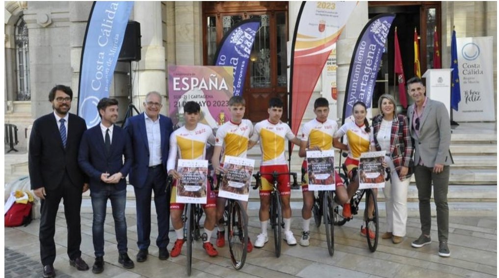 Los Campeonato de España Escolares y junior han sido presentados en la tarde de hoy, miércoles 29 de marzo, en el Palacio Consistorial de Cartegena hasta donde se han desplazado para apadrinar el acto Noelia Arroyo, alcaldesa de Cartagena; Fran Sánchez, director de deportes de la Región de Murcia; Álvaro Valdés, concejal de deportes de Cartagena; José Luis López Cerrón, presidente de la Real Federación Española de Ciclismo; y Miguel Fernández, presidente de la Federación de Ciclismo de la Región de Murcia.