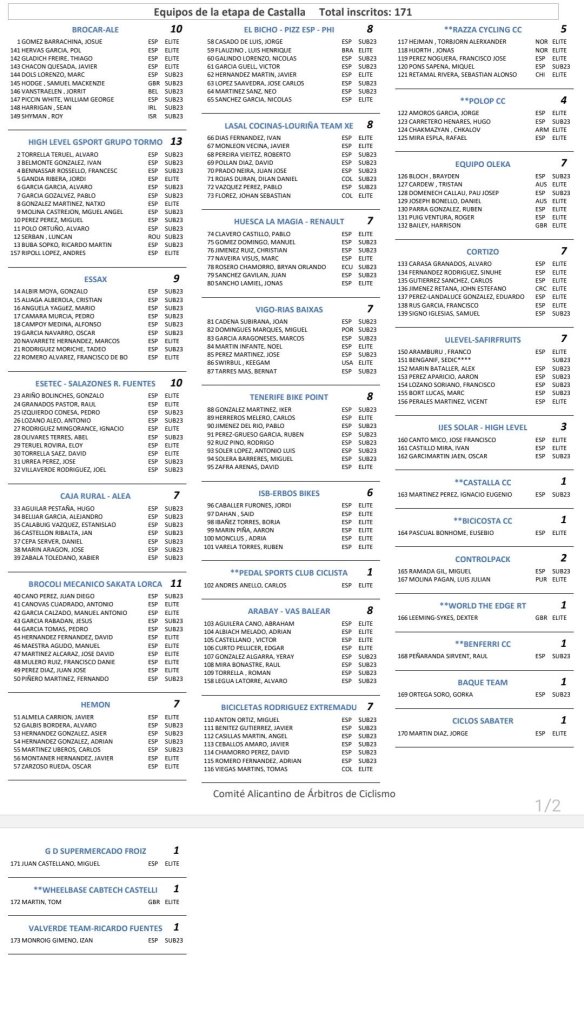 El filial del Caja Rural pondrá en liza a Dani Cepa y al valenciano Estanislao Calabuig. «Se corre en una zona que no conozco, pero ya he podido comprobar que son tres jornadas durillas», confiesa Cepa. Además, Miguel Juan (Froiz) y Eusebio Pascual (Bahrain Cycing Academy), que competirán las dos últimas jornadas, también se pondrán el dorsal de manera individual ya que son equipos no participan. Debuta con el High Level-Gsport-Grupo Innova, Andrés Ripoll y Raul Peñaranda participa con el Benferri. Lista de INSCRITOS