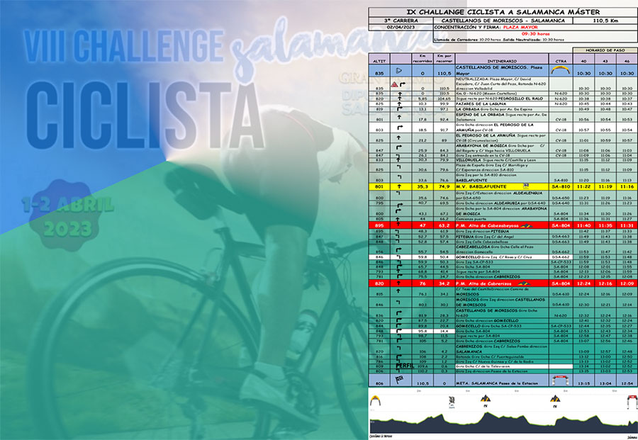 Se pondrá el candado el domingo por la mañana saliendo a las 10:30h desde Castellanos de Moriscos. Por delante 110 kilómetros con la meta volante de Babilafuente (km 35), y teniendo que coronar los altos de Cabezabeyosa (km 47) y Cabrerizos (km 76). Esa sucesión de repechos y la entrada en Salamanca, también en cuesta, hará que la emoción se prolongue hasta cruzar la línea de llegada situada en el Paseo de la Estación.