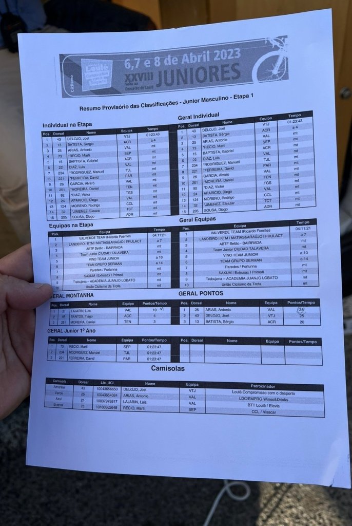 El español Joel del Ojo (Team Vino Junior) es el primer maillot amarillo de la 28ª Volta ao Concelho de Loulé Júnior tras ganar la etapa inaugural, disputada este jueves por la tarde. Ha llegado en solitario en meta. Martí Mir (Saxun Extrusax Primoti), que ha terminado cuarto, se ha vestido con el maillot de mejor júnior de primer año.