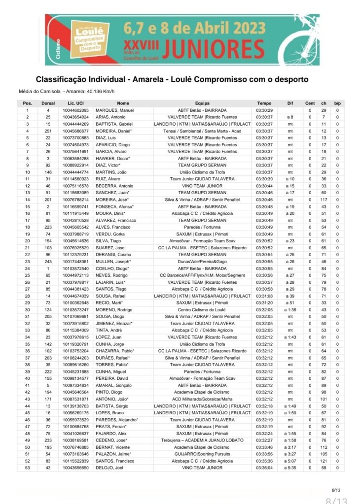 Antonio Arias es primero en la clasificación por puntos, Luis Lajarín (Valverde Team/Ricardo Fuentes) manda en la montaña y Daniel Moreira es el mejor junior de primer año. El Equipo Valverde/Ricardo Fuentes continúa al frente de la clasificación general por equipos.