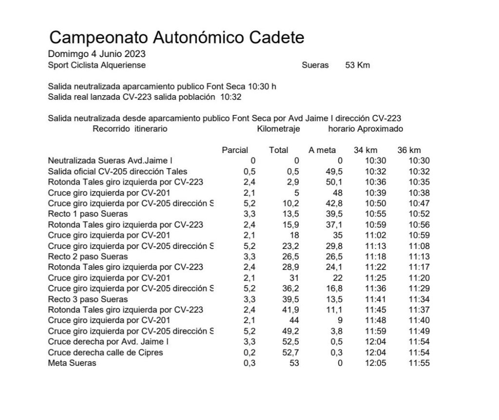 El equipo de cadetes Grau Pascual Retirem Amianto-Yenar visitó la localidad de Sueras (Castellón) para hacer el reconocimiento del trazado del circuito en el que se disputará el Campeonato Autonómico de ruta de la categoría, que tiene la fecha marcada el primer fin de semana del mes de junio, el día 4, y que pondrá en marcha el Club Ciclista les Alqueries a partir de las 10.30 horas.