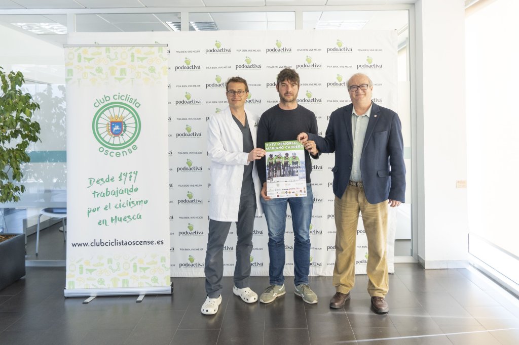 El salón de actos de las instalaciones centrales de Podoactiva, en el Parque Tecnológico Walqa, en Huesca, fue el escenario elegido para la presentación de la prueba y contó con la presencia de Javier Alfaro, director técnico de Podoactiva; José María Romance, presidente del Patronato Municipal de Deportes del ayuntamiento de Huesca; y Miguel Bergua, presidente del Club Ciclista Oscense.