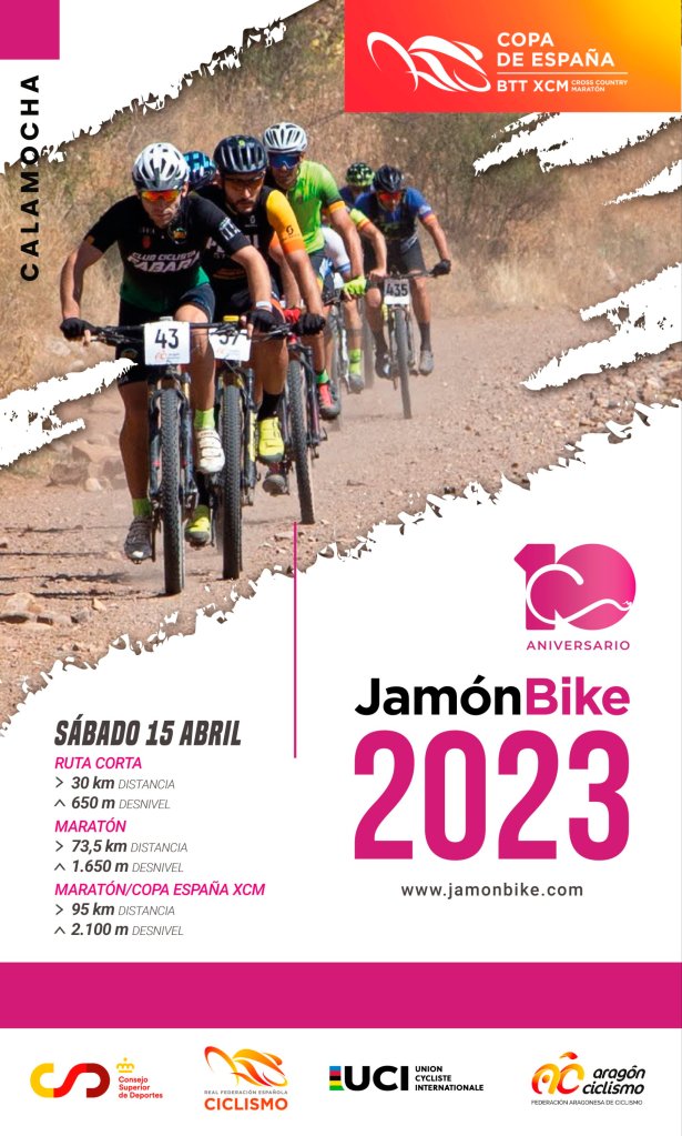 La Copa de España de XC Maratón dará comienzo este próximo sábado 15 de abril con la disputa de la Jamón Bike, una prueba ya clásica y referente del calendario nacional que en este 2023 celebra su décimo aniversario. La localidad turolense de Calamocha será un año más el epicentro de la competición y acogerá la salida y meta de esta primera cita de la Copa de España. El recorrido cuenta con 95 kilómetros y 2.100 metros de desnivel.