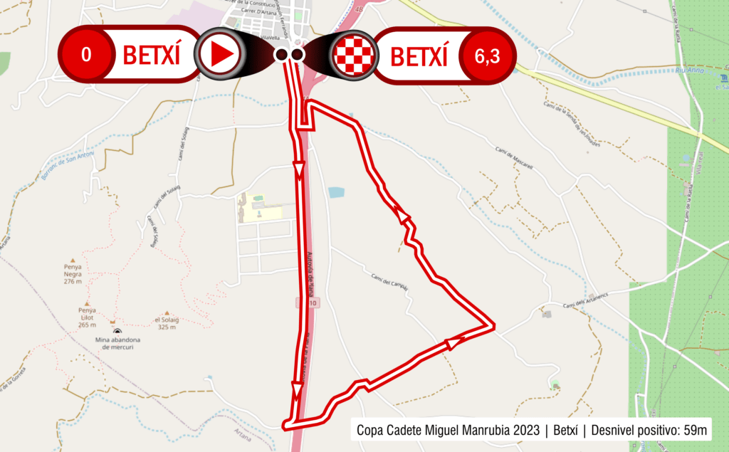 La localidad de Betxí acogerá el sábado, 22 de abril, la penúltima prueba del certamen con una contrarreloj de 6’3 kilómetros y sin duda la opción perfecta para mostrar el potencial en un recorrido eminentemente plano además de vivir el apoyo del público de la localidad y aficionados con cada corredor.