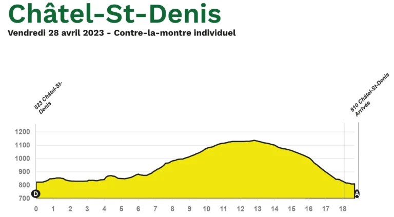 3ª: Viernes 28 abril. Chatel-St-Denis (14:11)-Chatel-St-Denis (17:11), 19 kms contrarreloj individual
