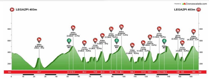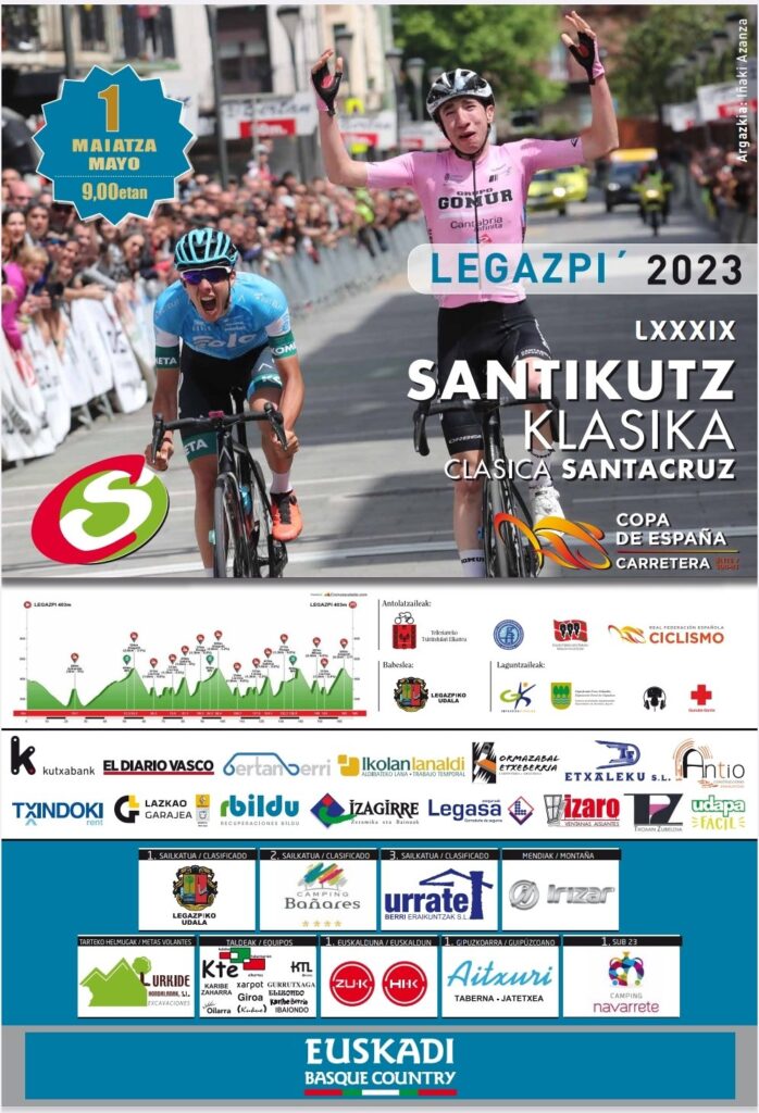 Legazpi acoge el lunes, día 1 de mayo, la LXXXIX Santikutz Klasika, prueba de la Copa de España Élite y Sub 23 que lidera Thomas Silva (Caja Rural-Alea), con 348 puntos, por delante del ruso Ilia Shchegolkov (Controlpack), que suma 280 puntos. Los 167 kilómetros de recorrido están adornados con nada menos que con 14 cotas puntuables, y la ascensión final a Atagoiti, a cinco kilómetros de la pancarta de meta que estará situada en Legazpi. La salida se dará a las nueve de la mañana.