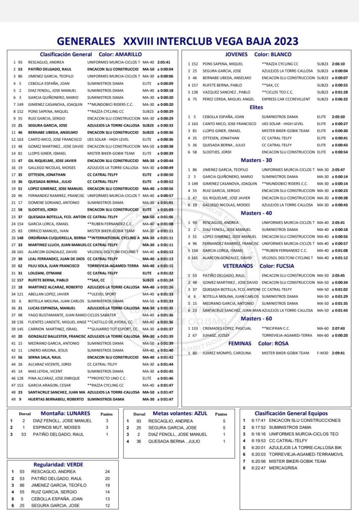 1. Los Montesinos. CRI. Clasificaciones