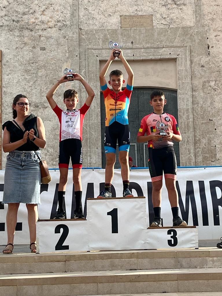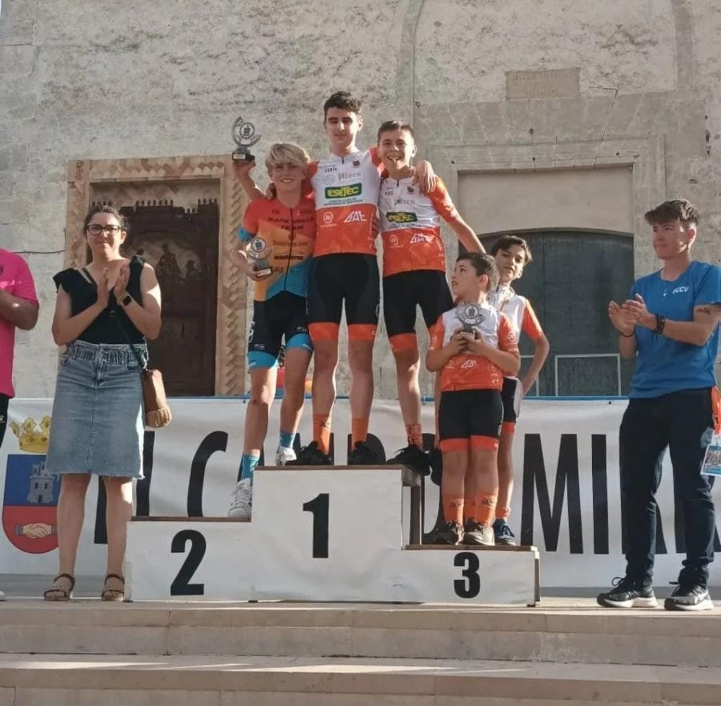 La Unión Ciclista Ilicitana se ha impuesto hoy en El Camp de Mirra en el I Trofeu Escoles de Ciclisme. Ha sumado 25 puntos por los 21 del CC Aitana y los 18 del Club Ciclista Almoradí. Gael Olaya (UC Ilicitana) y Iria Baquero (La Vila) se han impuesto en Promesas 1; Izán Mejías (Aitana) y Valeria Vidal (Aitana), en Promesas 2; Darío Castillo (Crevillent) y Vera Fullana (Bernia Xaló), en Principiantes 1; Iker Hiraldo (Sabater) y Vega Morales (AM Sonido), en Principiantes 2; Eugeni Melnikov (San Vicente) y Valeria Coloma (AM Sonido), en Alevines 1; Nacho Albors (Rafa Valls) y Jimena Gas (AM Sonido), en Alevines 2; Mario Tomás (UC Ilicitana) y Adriana Segura (Almoradí), en Infantiles 1; y Jorge Rueda (UC Ilicitana) y María Ivars (Bernia Xaló), en Infantiles 2.