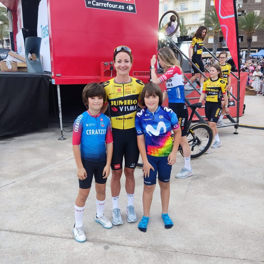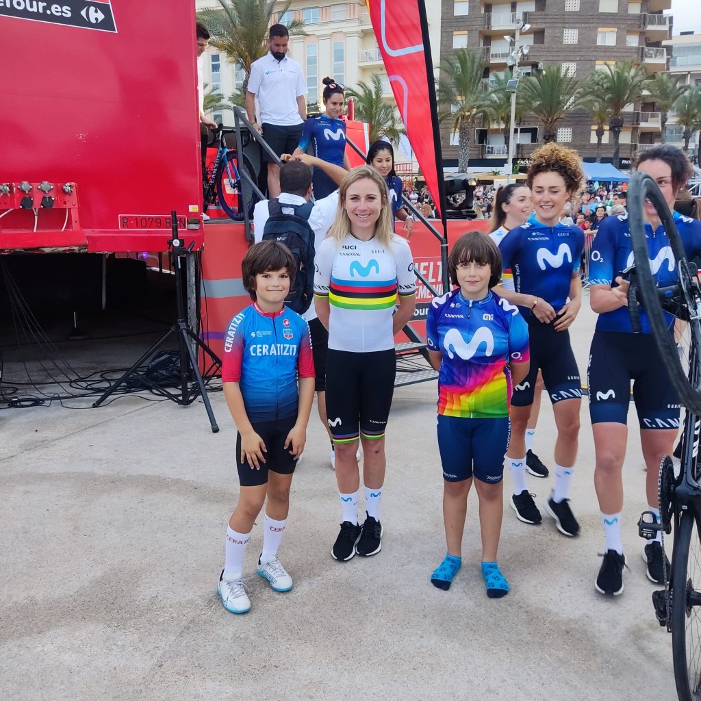 Todo está preparado para el gran estreno hoy lunes de La Vuelta Femenina by Carrefour.es, que celebró este domingo a las 19h su presentación oficial en las Piscinas Naturales de Torrevieja. Los 23 equipos participantes en esta histórica primera edición de La Vuelta Femenina by Carrefour.es se han presentado en un acto conducido por Laura Álvarez y Celia López, en el cual se han ofrecido diversos sorteos para los aficionados y que ha sido animado por la DJ Neus González y Jimena Amarillo. Una fiesta que arrancó a las 16:30h con una marcha popular que ha invitado a los aficionados a recorrer en bicicleta los 8 kilómetros que separaban el Palacio de los Deportes de Torrevieja con las Piscinas, donde han podido ver de cerca a las 160 ciclistas que formarán el pelotón de esta carrera tan esperada en un acto donde también han participado el director de la carrera, Fernando Escartín, la responsable de relaciones deportivas Dori Ruano y el alcalde de Torrevieja, Eduardo Dolón. “Es molón, ¿verdad?”, decía con asombro la ciclista de SD Worx Merlen Reusser. “Estamos sorprendidas con la cantidad de gente que ha venido”.