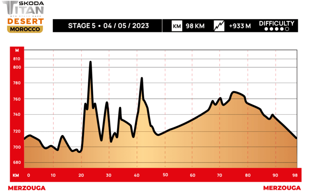 Un clásico de la Škoda Titan Desert Morocco, la etapa en bucle en torno a los cordones de dunas de Merzouga. Una vez más, esta etapa estará definida por un gran tramo de navegación rodeando la gran duna del Erg Chebbi, sin ningún tipo de señalización ni track disponible en los ciclocomputadores.