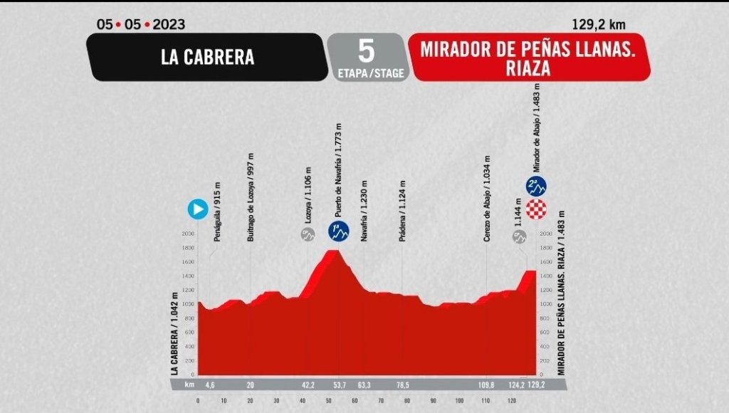 Después de estas cuatro primeras etapas donde hemos visto grandes demostraciones grupales, sprints, nervios y abanicos, la verdadera montaña llegará mañana en la 5ª etapa de La Vuelta Femenina by Carrefour.es, que unirá el municipio madrileño de La Cabrera y el final en primer final en alto de la carrera en el Mirador de Peñas Llanas (2ª categoría), en Riaza. Será una jornada de 129,2 kilómetros donde también se superará el Puerto de Navafría (1ª categoría) que se espera que empezará a definir la clasificación general.