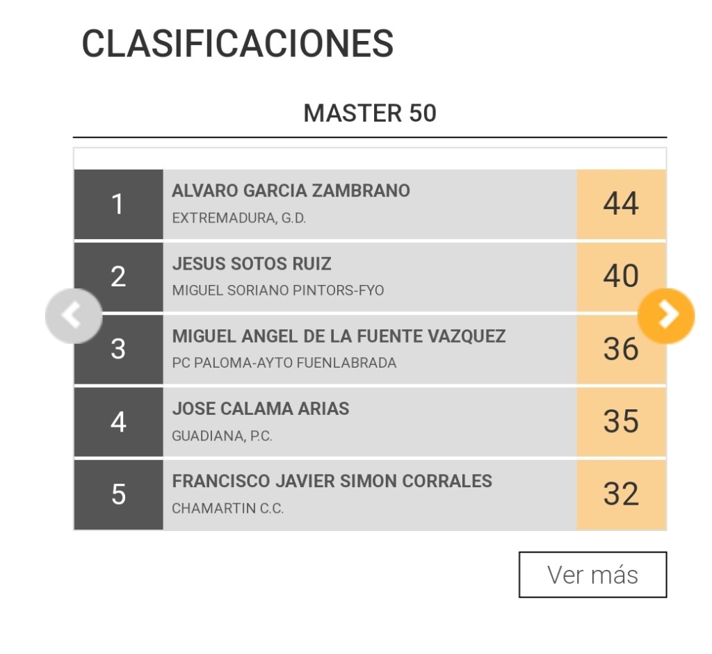A esta quinta prueba de la Copa de España Máster llegarán como líderes José Antonio Sánchez García (Máster 30), Pedro José Sánchez Cidoncha (Máster 40), Álvaro García Zambrano (Máster 50) y Juan Lanzuela Yuste (Máster 60).