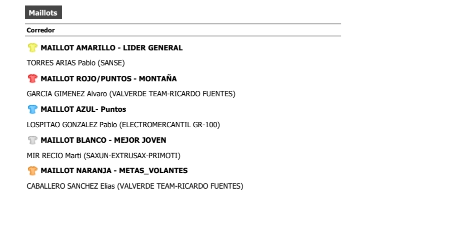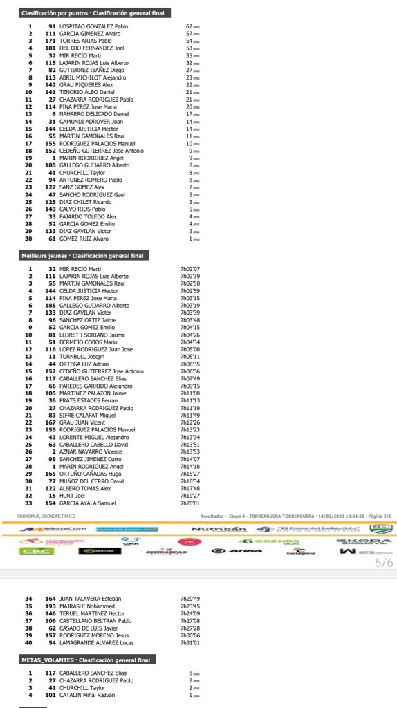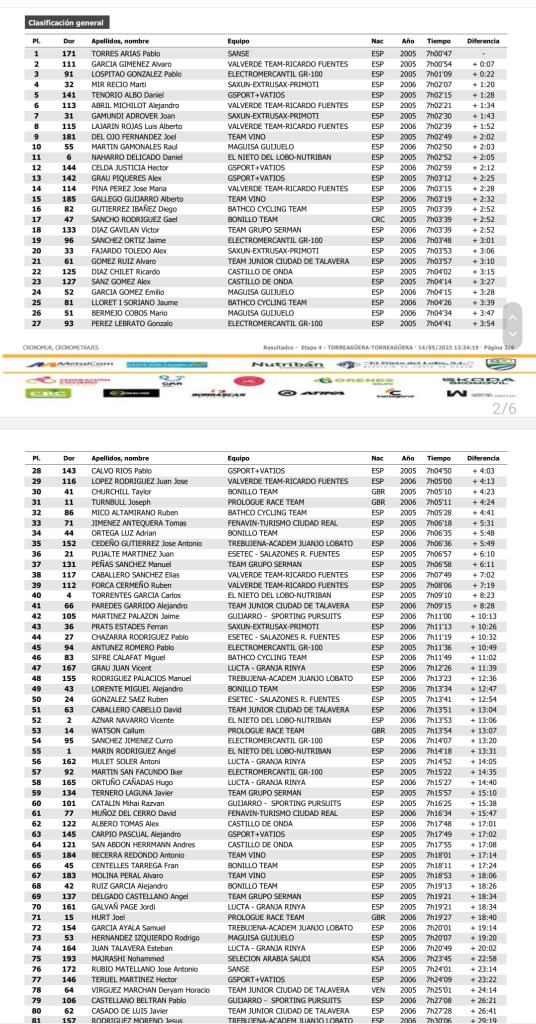 En la General, Pablo Torres (Sanse) ha sido el vencedor final, con Álvaro García (Valverde Team) y Pablo Lospitao (Electromercantil) a su lado en el podio. Álvaro García se ha llevado la montaña y Martí Mir el maillot de los jóvenes.