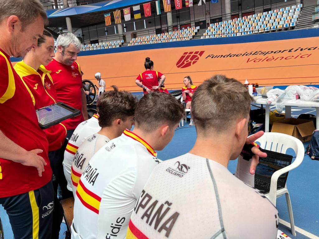 El seleccionador nacional de Pista, Félix García Casas, ha puesto el punto y final a cuatro excelentes días de concentración en València con sus elegidos preparando sus dos grandes compromisos de la temporada: el Campeonato de Europa, que se disputará en Anadia (Portugal) del 11 al 16 de julio, y el Campeonato del Mundo, que tendrá lugar del 23 al 27 de agosto en Cali (Colombia). Ha sido muy completa e intensa la labor realizada en el Velódromo Luis Puig durante las cuatro jornadas con los ciclistas júniors, analizando cada detalle con las cuartetas y trabajando en todos los aspectos de la condición física. Importante la aportación del equipo rendimiento de la RFEC liderado por el alicantino Manuel Mateo, también seleccionador nacional júnior, para conocer en detalle las capacidades de los corredores y a la hora de empezar a perfilar el equipo definitivo con el que se acudirá al Campeonato de Europa, primero, y al del Mundo, a continuación.