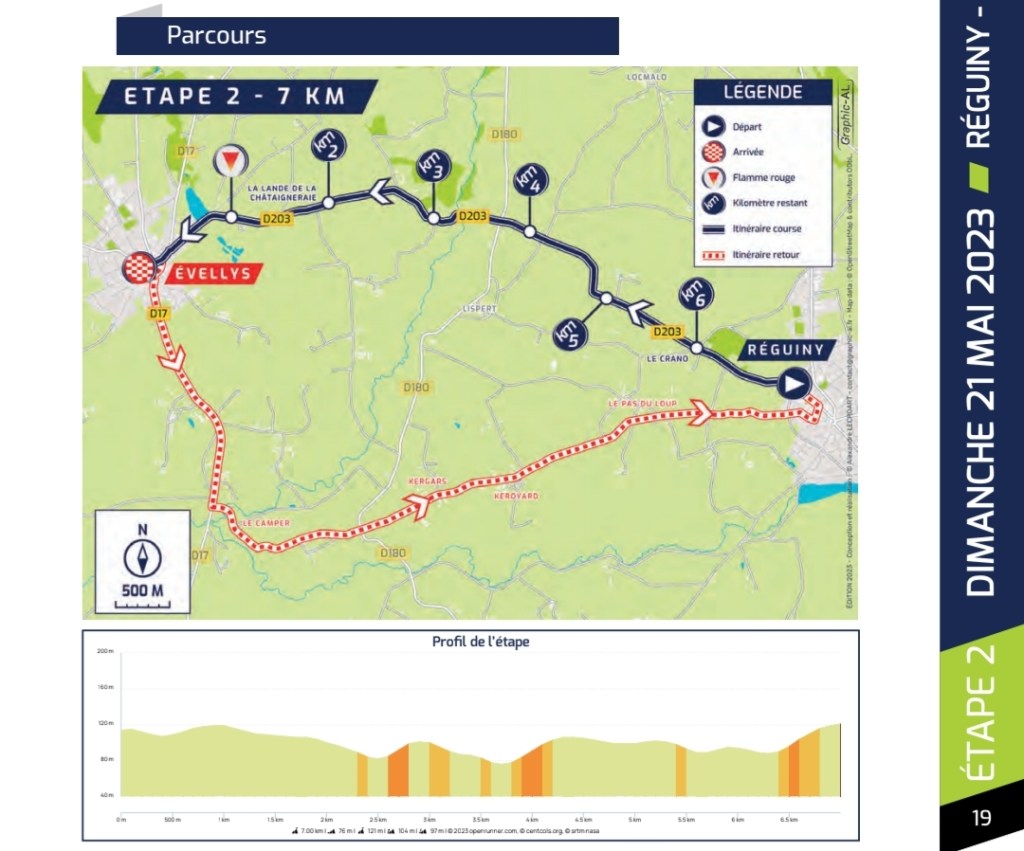 La jornada final del domingo estará compuesta por un doble sector. Por la mañana, desde las 8:45 h., los ciclistas disputarán una contrarreloj individual de siete kilómetros; y ya por la tarde se enfrentarán a la última etapa, un quebrado recorrido de 115,6 kilómetros con salida en Lizio a las 14:20 h. y llegada a Locminé.