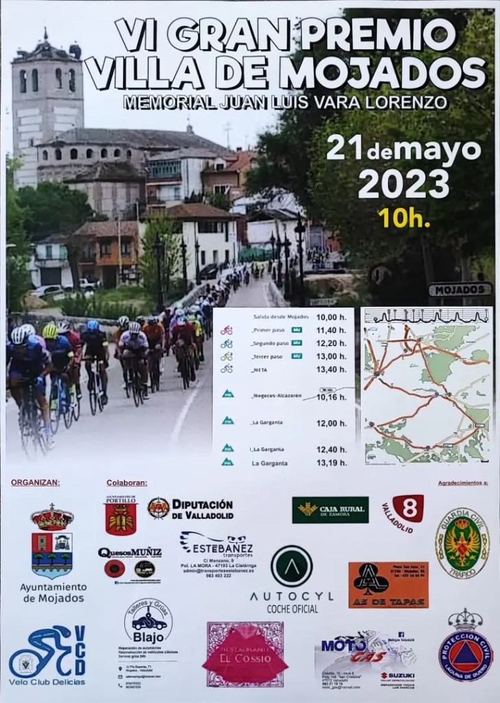 El domingo, el protagonismo recaerá en el VI Gran Premio de Mojados, con 153 km. Será más suave que el del año pasado pero contando con la dureza del día anterior hará que la carrera sea muy selectiva. La salida está prevista a las diez. Ambas carreras están organizadas por el Velo Club Delicias.