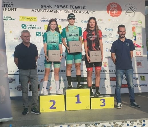 Gloria Fullers (Asbike) y Ángela Fernández (Esetec Salazones Ricardo Fuentes) han sido ls ganadoras de las dos mangas del V Gran Premi Ajuntament de Picassent de Féminas que se ha disputado en la localidad valenciana organizada por el Picassent Bici Club. En la primera carrera, en la que participaban cadetes y Máster, la M40 Fullers entró la primera, con Leyre Toledo y Leyre Almena, a continuación. De esta forma, la noveldense ha sido la primera cadete y ha estado acompañada de su compañera de escuadra Almena y de Aitana Calabuig (International Cycling). Noelia Sebastia (Asbike) ha sido la mejor M30; y Rima Gramaliauskiene (Asbike) ha logrado la victoria en M50. Las metas volantes se las ha adjudicado Leyre Almena.