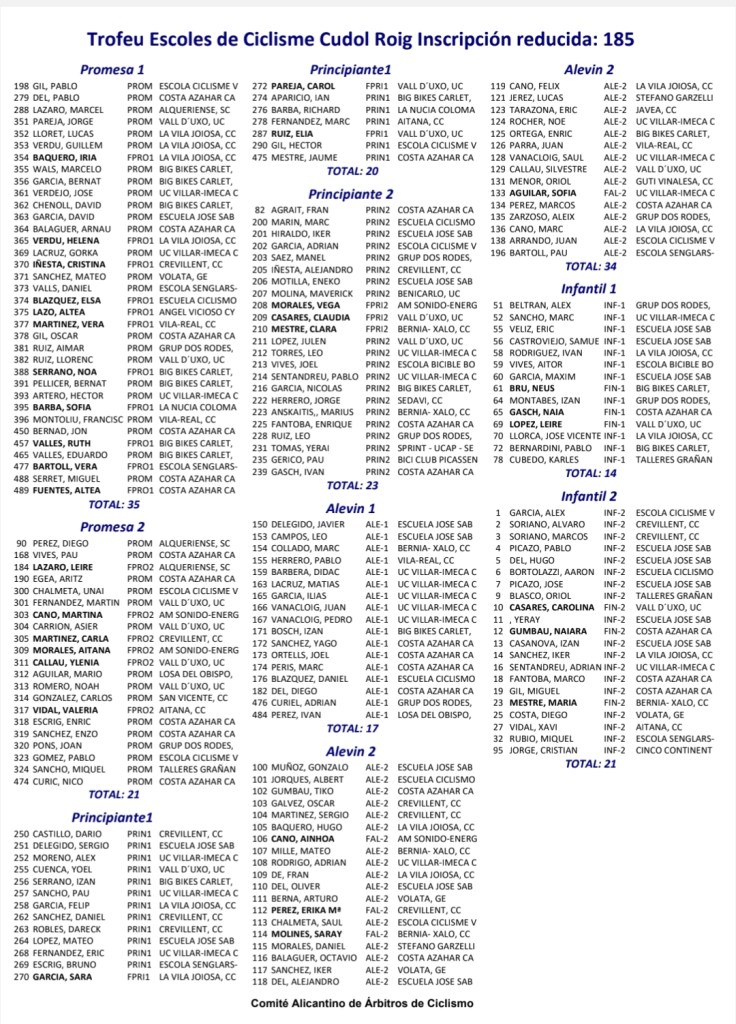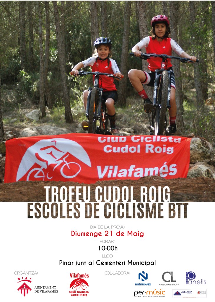 El domingo se disputa en Villafamés el Trofeu Cudol Roig de Escoles de Ciclisme de BTT. Es la penúltima prueba de la Challenge. Comenzará a las 10 hora y están inscritos 185 corredores de toda la Comunidad.