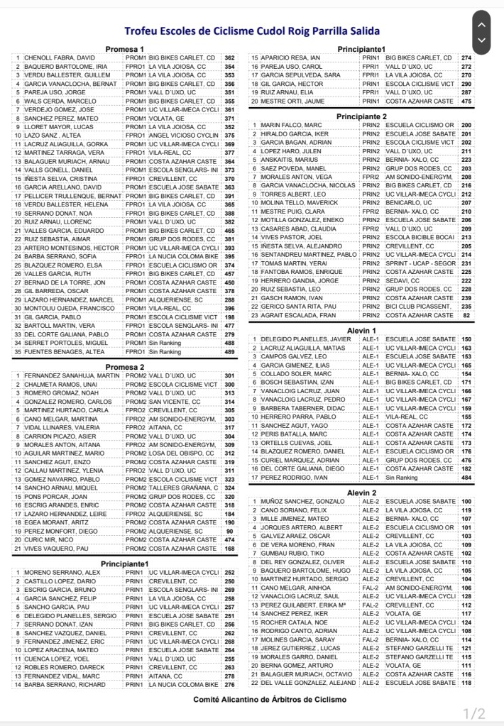 - Categorías: Promesas Masculino 2, Promesas Masculino 1, Promesas Femenino 2, Promesas Femenino 1, Principiantes Masculino 2, Principiantes Masculino 1, Principiantes Femenino 2, Principiantes Femenino 1, Infantil Masculino 2, Infantil Masculino 1, Infantil Femenino 2, Infantil Femenino 1, Alevin Masculino 2, Alevin Masculino 1, Alevin Femenino 2, Alevin Femenino 1, Cadete Fem.