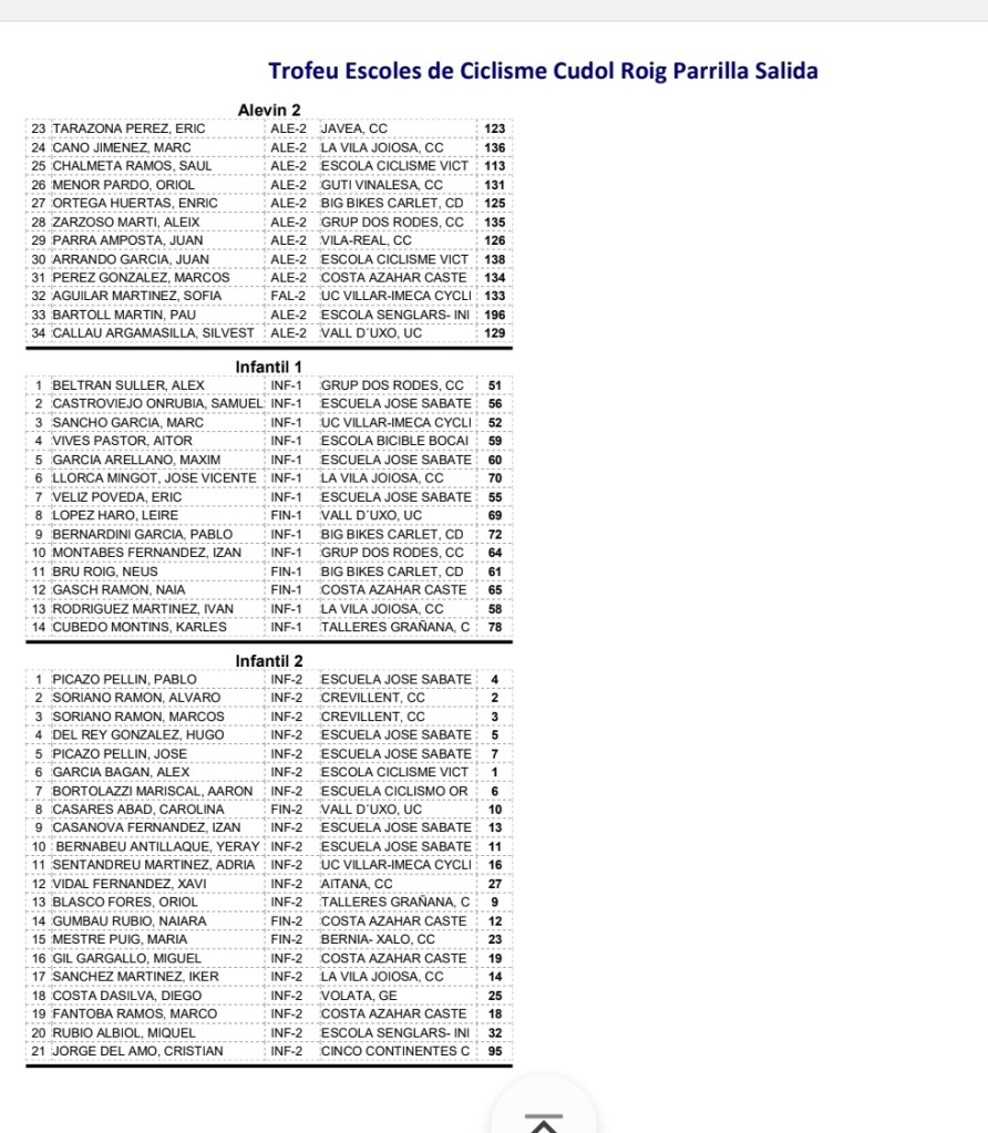 - SANT JOAN DE MORÓ. Clasificaciones