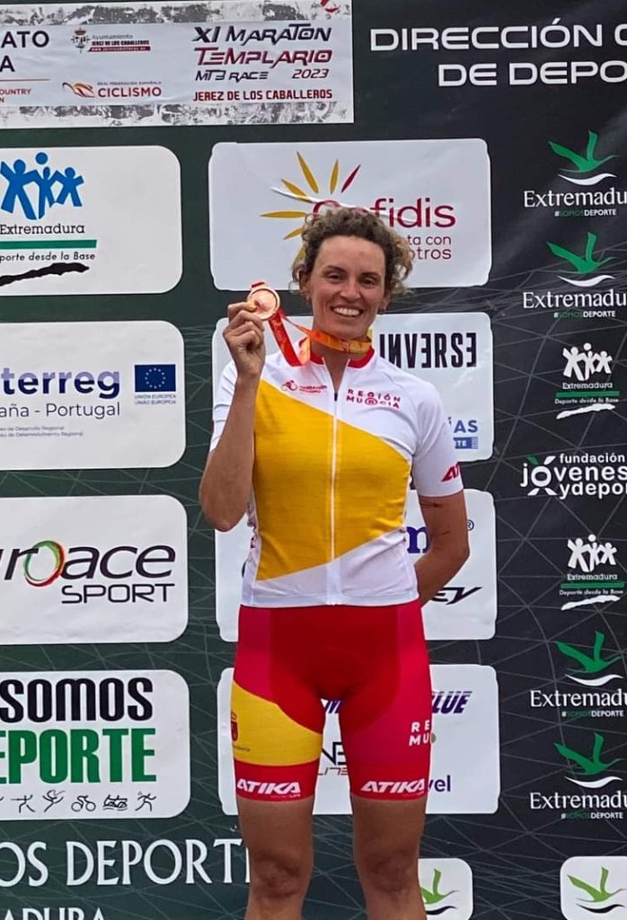Mónica Belda logró el domingo la medalla de bronce en el Campeonato de España BTT XCM disputada en Jérez de los Caballeros dentro del XI Maratón Templario, en la categoría de Máster 30 B. Nacida en Banyeres de Mariola (27-10-1986) disputó el Nacional con la Selección de la Región de Murcia. Tiene su ficha con la Federación Murciana ya que reside en la provincia vecina. «No me he quedado con nada. Carrera muy controlada por mi parte, sin picos ni excesos pero con cabeza», señala la alicantina tras bajar del podio.