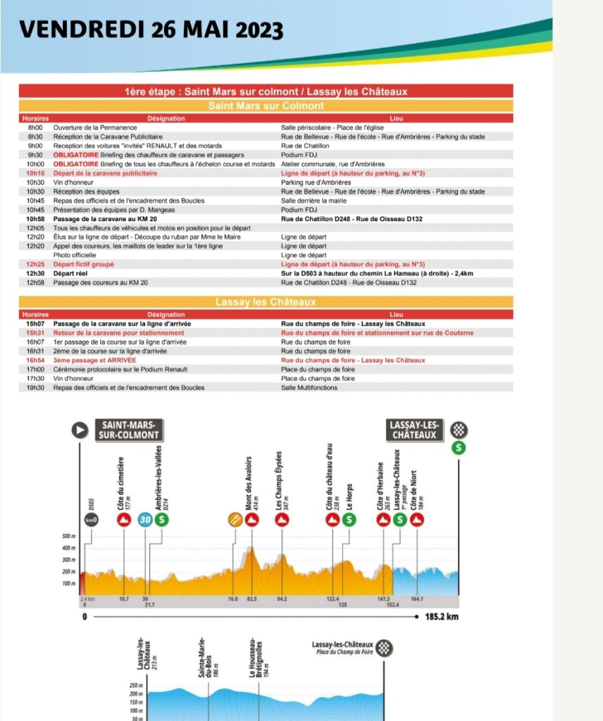 26/05 – 12:25 – 16:55. 1ª etapa: Saint-Mars-sur-Colmont – Lassay-les- Châteaux, 185,2 km