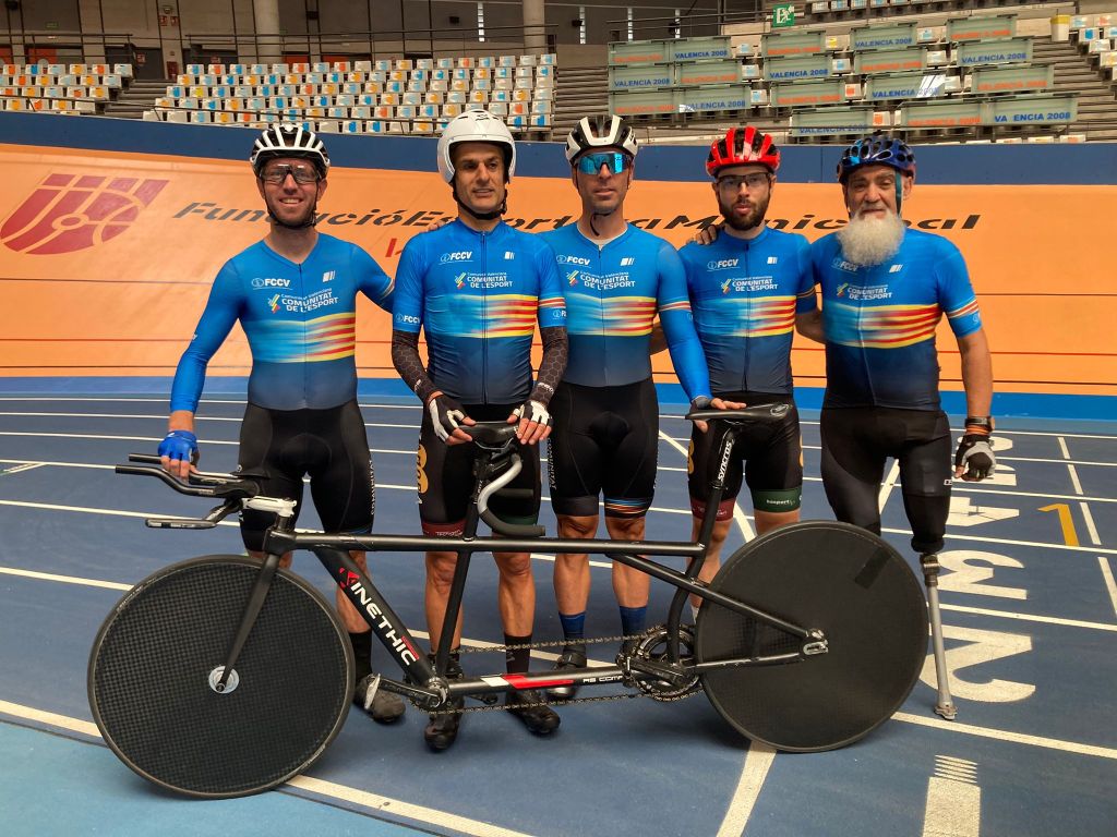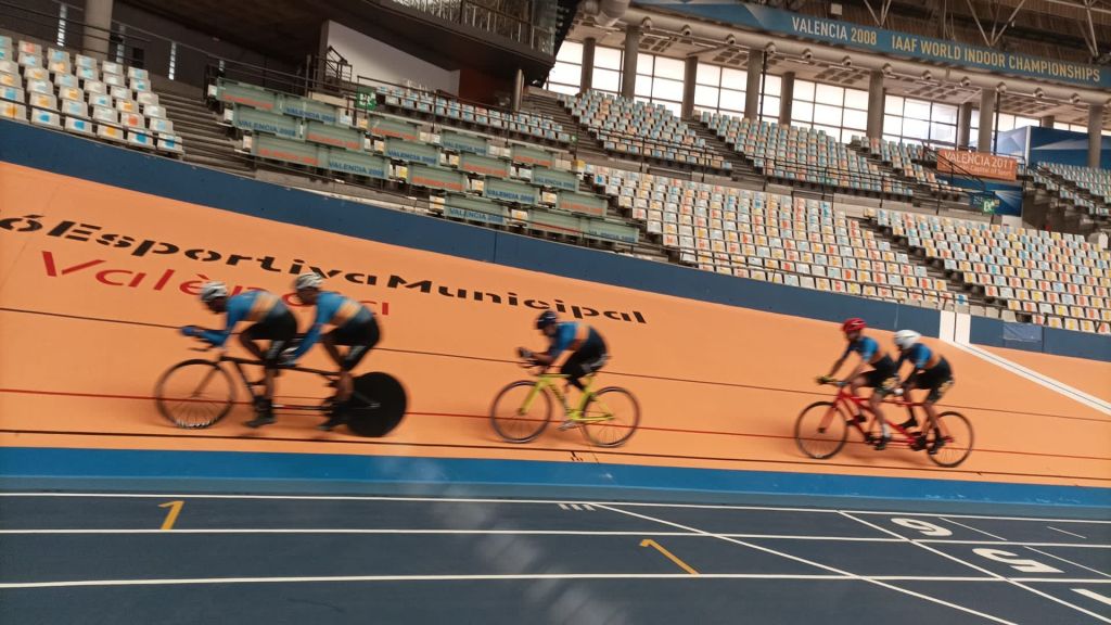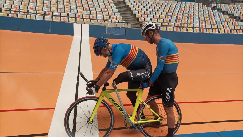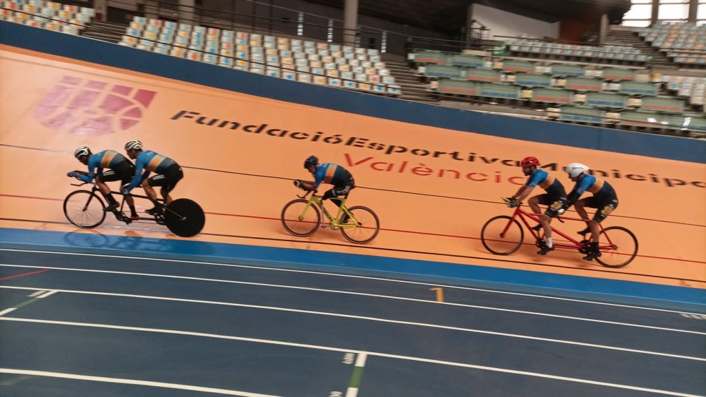 Vicent Perales, seleccionador autonómico de ciclismo paralímpico, ha trabajado esta mañana en el velódromo Luis Puig de València con cinco de los corredores que estarán del día 9 a 11 de junio en el citado recinto en el Campeonato de España de Pista Élite-Sub 23 y Paralímpico. Jesús Mateu Vercher, además de los tándems formados por Rubén Capdevila-Vicent Perales y Francisco Javier Vaquero-Óscar Perales, han acudido a la cita. Rosa Sansaloni no ha podido estar como en principio estaba previsto.