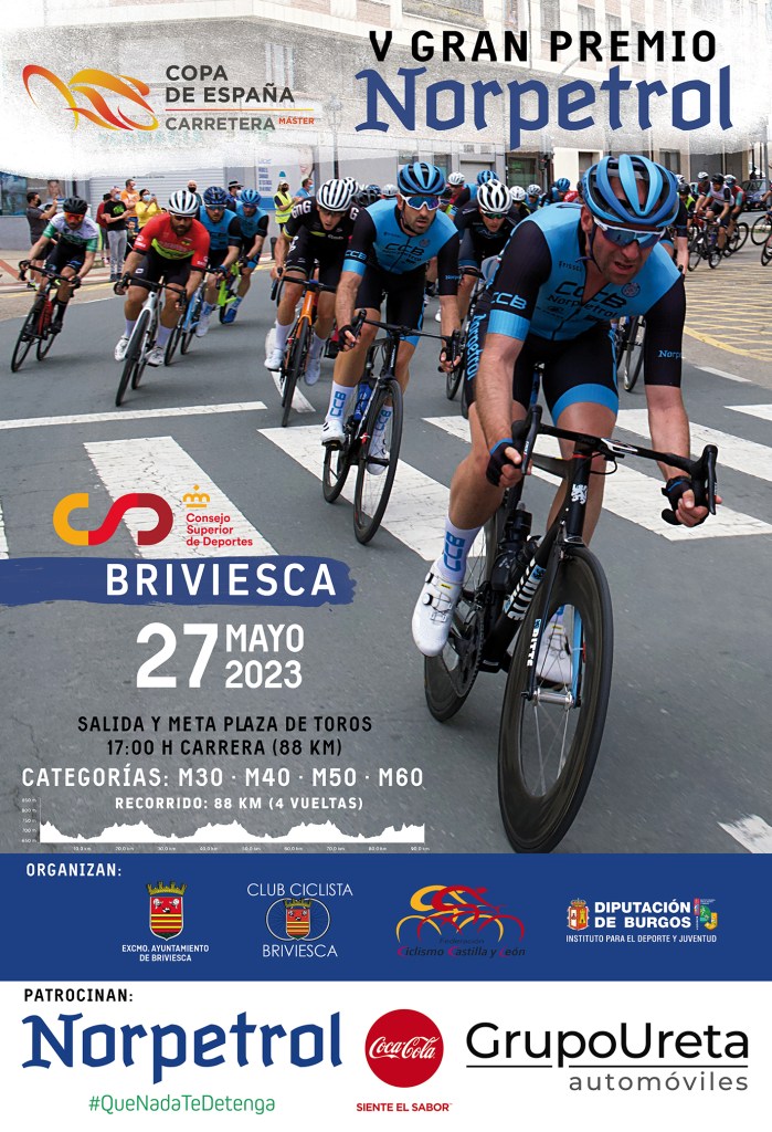 El Club Ciclista Briviesca, junto al Ayuntamiento de Briviesca y el IDJ, organizan el sábado, día el 27 de mayo, el “V GP Norpetrol” de Ciclismo Máster. Será la última prueba de la Copa de España 2023 que de momento encabezan José Antonio Sánchez (Kazajoz-Ranvaclinic-Petrogold) en la categoría de Máster 30; Pedro José Sánchez Cidoncha (Tany Nature-Don Benito), en M40; Miguel Ángel de la Fuente (PC Paloma-Fuenlabrada), en M50; y José Luis Vallejo (Andalucía Nature), en M60.