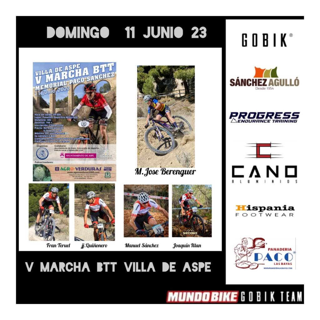 El domingo, día 11 de junio, se disputará la quinta edición de la Marcha BTT Villa de Aspe-Memorial Paco Sánchez que organiza la Peña La Pajara Aspe. La participación augura que la prueba va a ser todo un éxito. El grupo ciclista local de féminas, denominado Hornagirls, ha aportado nada menos que once integrantes, el club que más presencia tendrá en la cita Marcha. También estará el Mundobike con Manuel Sánchez Aldeguer, María José Berenguer, Fran Teruel, J. J. Quiñonero y Joaquín Illán. Acude a la carrera aspense Elena Lloret (Kenza Sport).