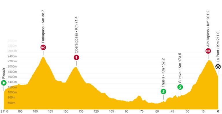 5ª: Jueves 15 junio. Fiesch (10:43)-La Punt (16:15), 211 kms