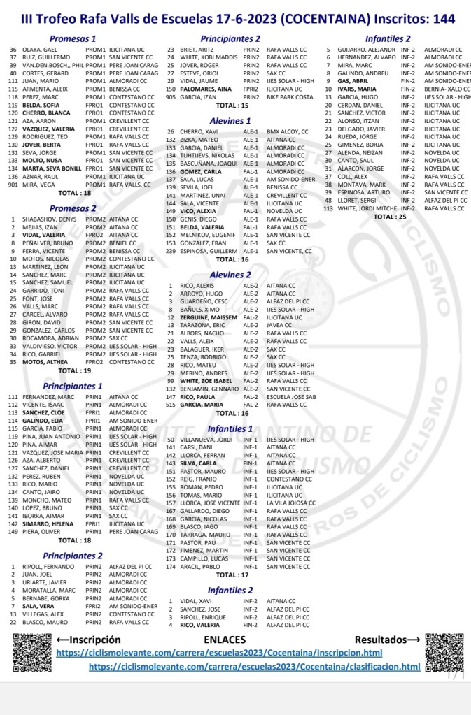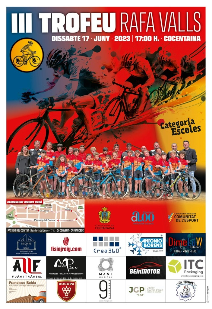 El III Trofeu Rafa Valls de Escuelas de Ciclismo se disputará el sábado, 17 de junio, en Cocentaina. La competición dará comienzo a las 17 horas en el Passeig del Comtat.