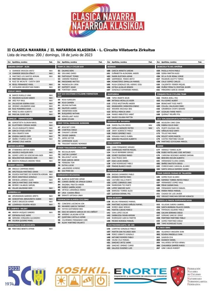 Este domingo se disputará en Villatuerta la «II Clásica Navarra/ Nafarroa Klasikoa – L. Circuito Villatuerta» que reunirá a 200 de ciclistas júnior venidos de toda España, además de Francia, Ecuador, Rusia, Austria entre otros países.