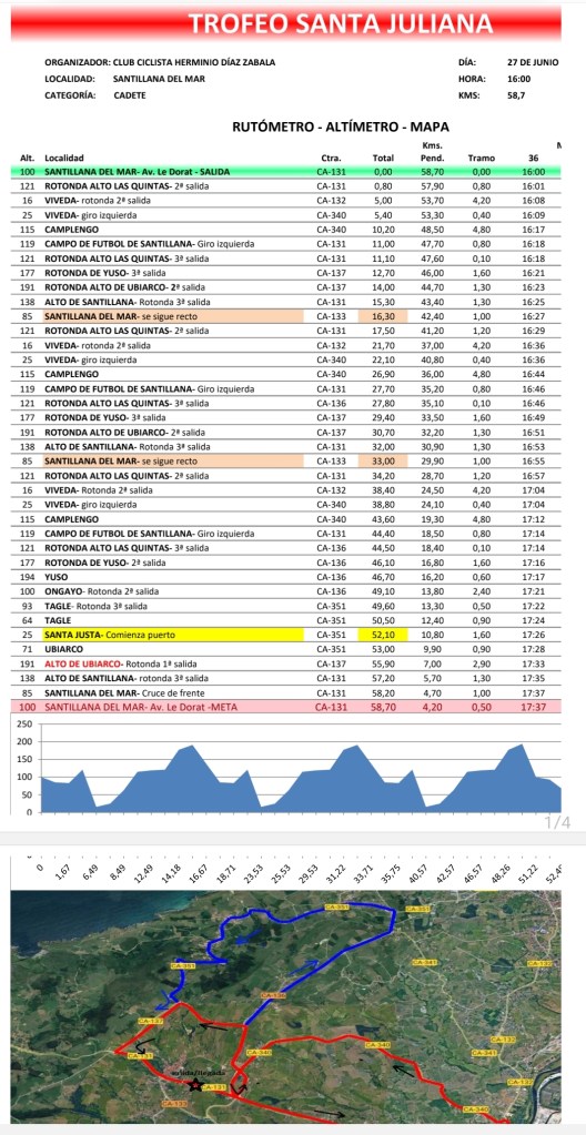 El equipo cadete del Sport Ciclista Alqueriense, se ha desplazado a la localidad cántabra de Santillana del Mar localidad en la disputará el martes, día 27 de junio, el Trofeo Santa Juliana que organiza el CC Herminio Díaz Zabala. La prueba comenzará a las 16 horas y cuenta con 58,70 kilómetros de recorrido. Manuel Aguilella, director del TBG Alqueriense, desplaza a Miguel Angel Aguilella, Yoel Herrero, Marc Chalmeta, Hugo Arnalte, Daniel Ruiz, Albert García y Pablo Molina.