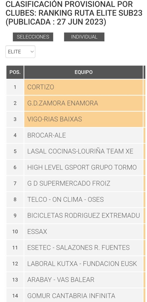El equipo Brocar Alé es cuarto en el Ranking de Ruta Élite de la RFEC. La clasificación la encabezan Cortizo, Zamora Enamora y Vigo-Rias Baixas en una lista de 54 escuadras de todo el panorama Nacional. En lo que va de campaña el conjunto alcoyano lleva sumadas cinco victorias. Pol Hervás abrió la veda a principios de marzo en el Trofeo Olías Industrial. Ya, en mayo, repitió Hervás en el Trofeo Santa Quiteria de Higueruela y Josep Tomàs se impuso en Murcia. Ya, en junio, Pol Hervás subió a lo mas alto del podio en La Clásica La Rioja y Álvaro Sagrado en la Vuelta a los Pinares Segovianos. Sin olvidar la medalla de plata de Josep Tomàs en el Campeonato de España Sub 23.