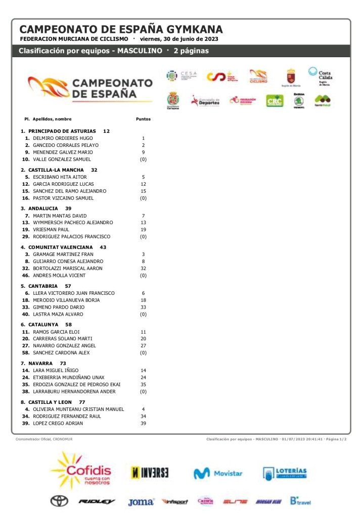 En la categoría masculina, el asturiano Hugo Delmiro se ha hecho con el triunfo en la gymkhana infantil. Pelayo Gancedo ha firmado un segundo puesto y Fran Gramage ha logrado el bronce para la FCCV. Por escuadras la Comunidad ha terminado cuarta y Alejandro Guijarro, octavo. Puesto 32 para Aarón Bortolazzi. Andrés Molla ha finalizado en la plaza 46.