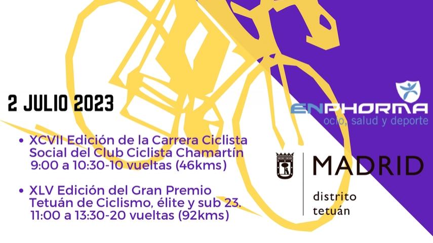 El domingo, día 2 de julio, el Club Ciclista Chamartín organiza el Campeonato Social del club y Gran Premio Tetuán – XLV Trofeo Industriales. La competición se llevará a cabo en las calles de Madrid, con salidas y llegadas en C/ Bravo Murillo, 357, frente a la Junta Municipal de Tetuán.