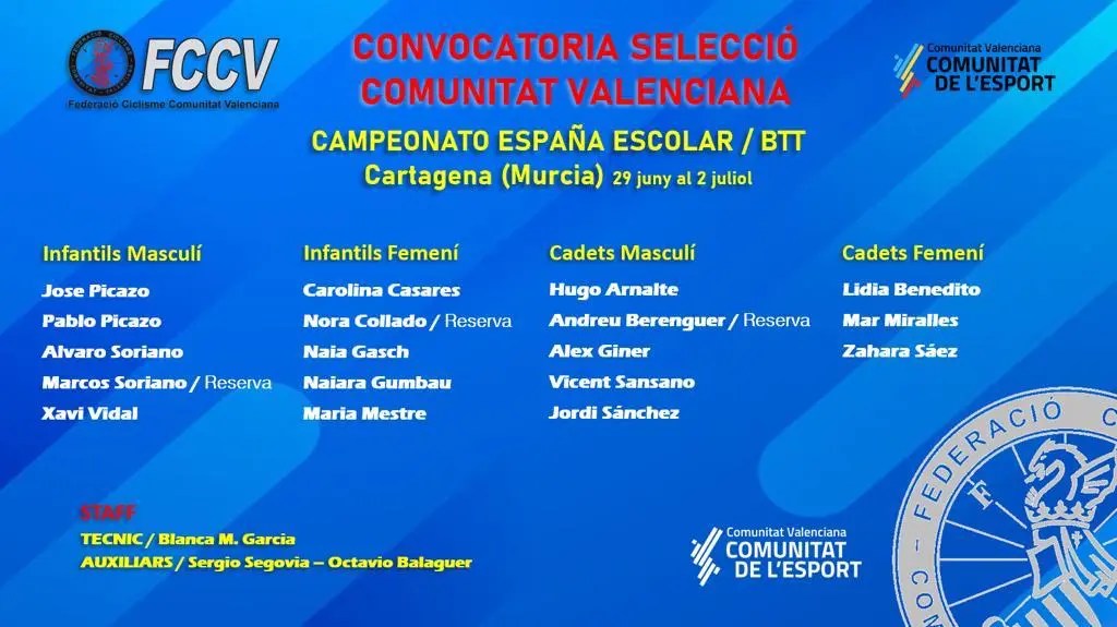 En el tercer día de competición tomará hoy el protagonismo el BTT. Durante la mañana del sábado se pondrán en juego en el Paraje de las Escarihuelas los títulos de campeones/as de España de XCO cadetes e infantiles. Ayer se rodó en el circuito y «todos están muy emocionados y motivados», afirma Blanca García, seleccionadora de la FCCV. Tiene claro que lleva «un buen grupo para poder estar delante pero el sorteo de posiciones veta a muchos por salir tan detrás».
