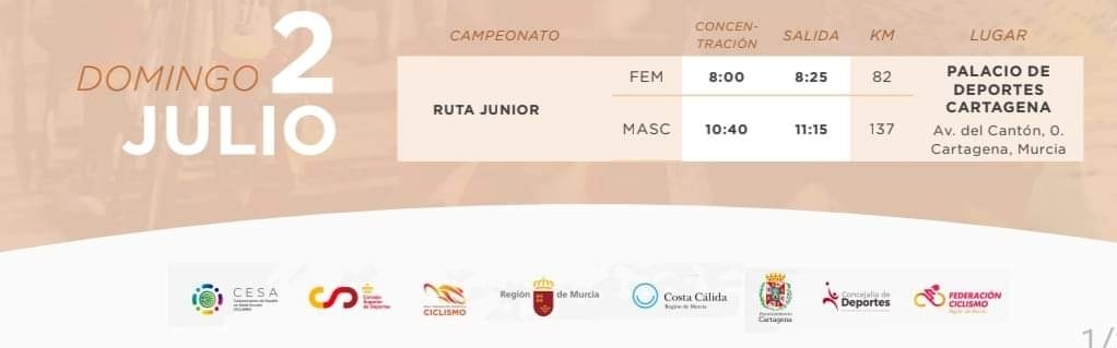 La jornada final de estos Campeonatos de España se disputa hoy domingo. Será la celebración de la prueba en línea júnior masculina y femenina. Las chicas tendrán que encarar un bonito recorrido de 82 kilómetros, que como principales dificultades contendrá los ascensos al Alto de la Cuesta, de 1’3 km al 5’2% de pendiente media, y al Alto del Cedacero, de 4’8 km al 5’5%. «Es un recorrido atractivo, pero tenemos muchas rivales de calidad y buscaremos nuestra oportunidad. Como siempre, saldrán a dar el máximo», señala el seleccionador autonómico Ángel Alfaro.