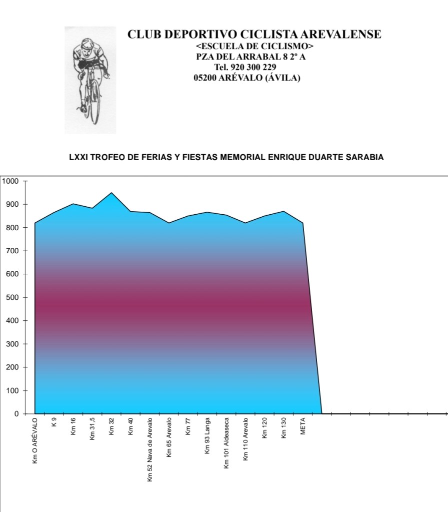 Hoy, lunes 3 de julio, se disputa el LXXI Trofeo Ferias y Fiestas de Arévalo-Memorial Enrique Duarte Sarabia, como anticipo de la Vuelta a Ávila que regresa del 7 al 9 de julio para las categorías élite y sub-23, tanto masculinas como femeninas. Estará en la línea de salida el Brocar Alé con el mismo equipo que compitió ayer en el GP de Tetuán y en el que se impuso Pol Hervás. Se suma al grupo Josep Tomàs.