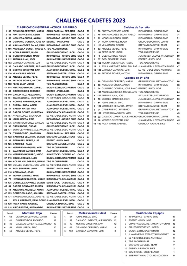 Challenge de Cadetes de la CV. General.