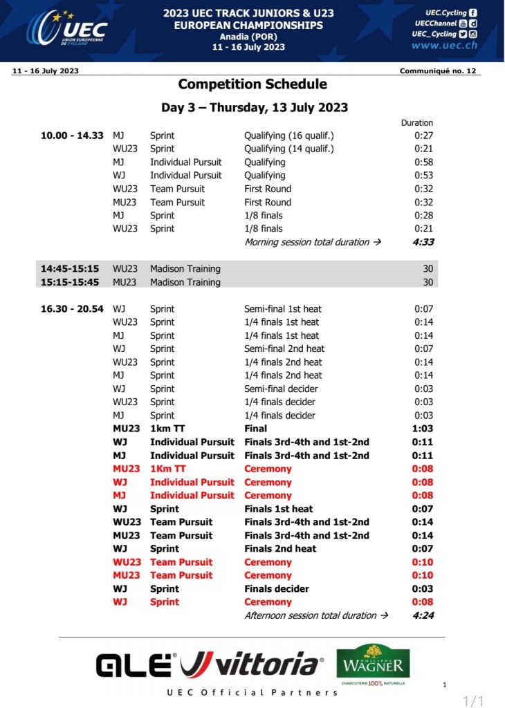 Ya al final de la sesión vespertina, la sub23 de primer año Lucía García concluía en 13ª en la final de scratch, mientras que Clara Martínez se situaba en el mismo puesto en la eliminación júnior. Mario Anguela, sexto en la clasificatoria de scratch sub23, concluía 13º en la final.
