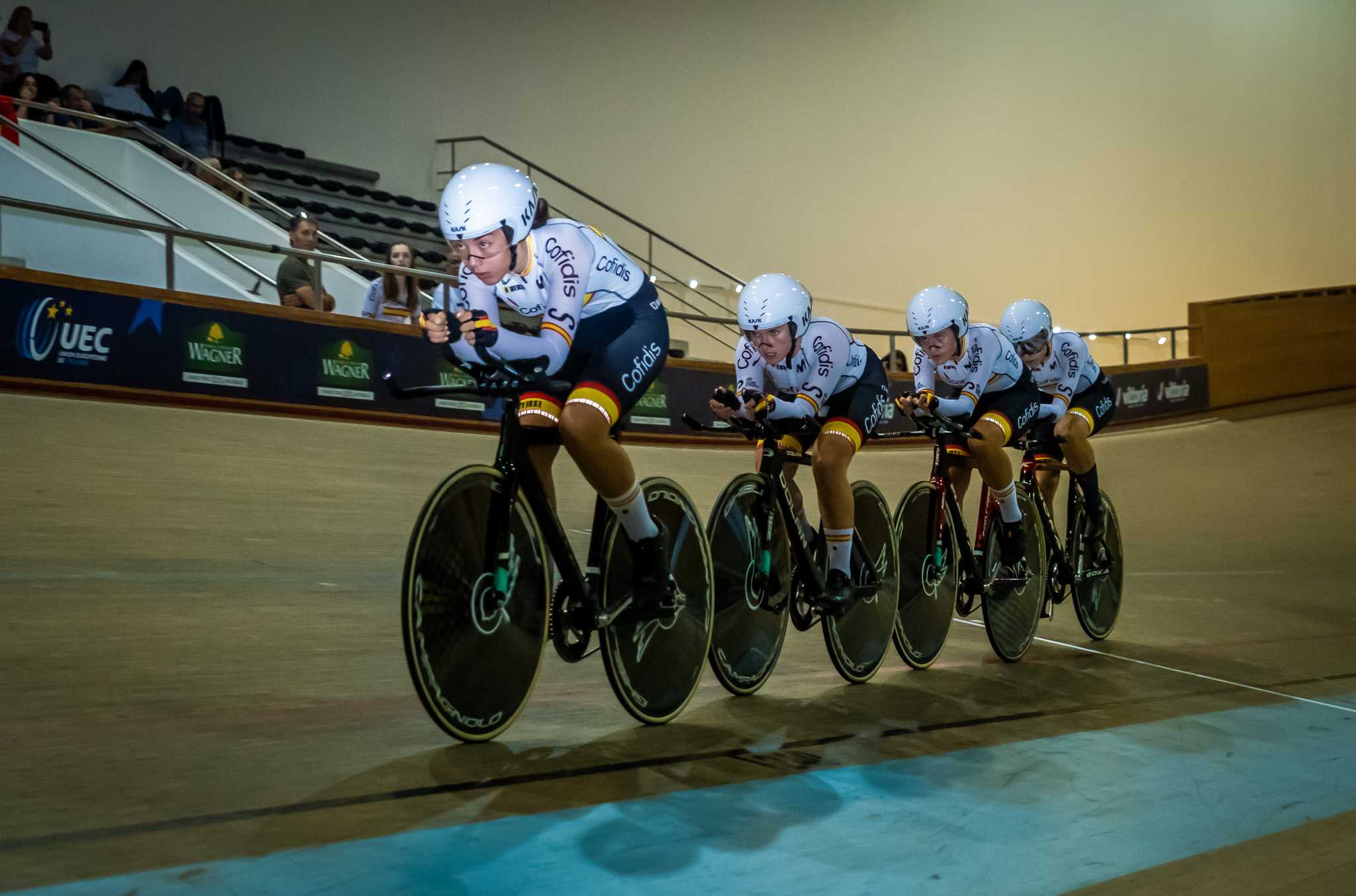 La cuarteta femenina sub23 ha dejado hoy un buen registro en el Europeo para concluir la clasificatoria en la octava plaza. El equipo compuesto por Ainara Albert, Izzy Escalera, Marina Garau y Lucía García ha firmado un tiempo de 4:35.437; un registro que expone el buen trabajo previo realizado y el margen de mejora de este joven grupo de ciclistas, que mañana tendrá una nueva oportunidad de mejorar. Los hombres sub23 han finalizado su clasificatoria en séptima posición. Francesc Bennassar, Beñat Garaiar, Alejandro Merenciano y Álvaro Navas han completado la persecución marcando 4:07.980.