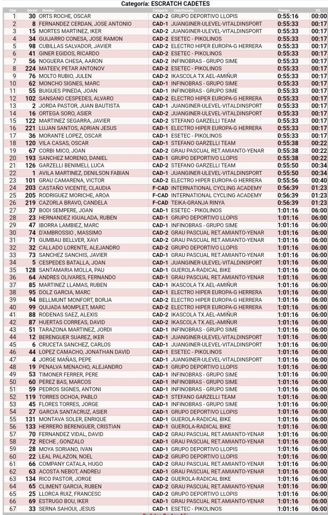 En féminas, Claudia Castaño (International Cycling Academy) ha sido la ganadora por delante de su compañero de equipo Aroa Rodríguez y de Candela Cazorla (Teika Granja Rinya).