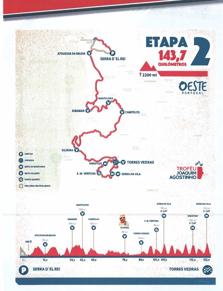15/07 – 12:15 – 15:45. 2ª etapa: Serra D`El Rei – Torres Vedras, 143,7 km