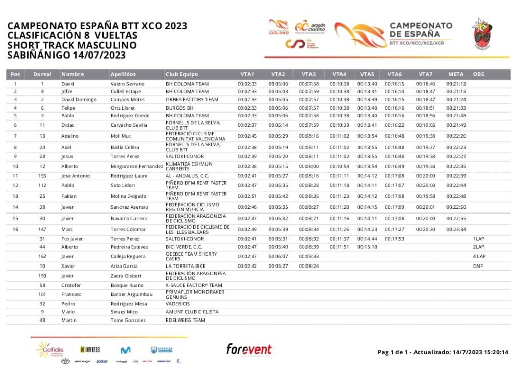 David Valero (BH Coloma) ha revalidado esta mañana en Sabiñanigo su título de campeón de España de Short Track. Jofre Cullel (BH Coloma) ha sido segundo y David Campo (Orbea Factory) completa el podio. Cuarta plaza para Felipe Orts (Burgos BH). Adelino Moll, con el maillot de la FCCV, ha terminado séptimo.