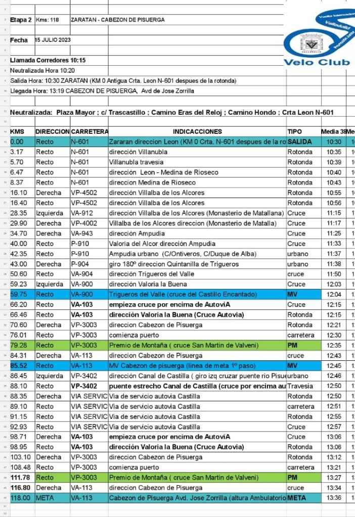 Etapa 2. 15 de julio. Zaratán-Cabezón. 118km. 10h.