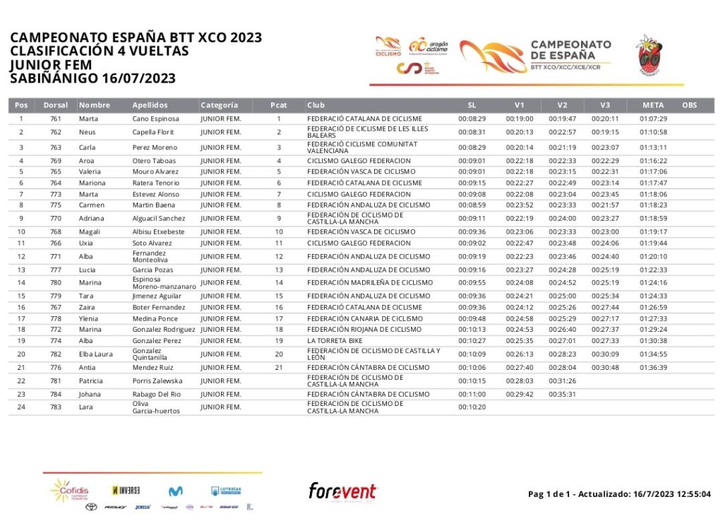 Entre las sub23, se pudo ver una bonita lucha entre Estíbaliz Sagardoy y Lucía Gómez, que últimamente caía de cara de esta última, pero en Sabiñánigo cambiaron las tornas. La ciclista navarra supo regular muy bien sus fuerzas y jugar sus cartas. La del Saltoki quería despedirse de la categoría sub23 con un título y así lo hizo. Sagardoy llegaba a línea de meta con una ventaja 31 segundos sobre Lucía Gómez y de 53” sobre la balear Eva González.