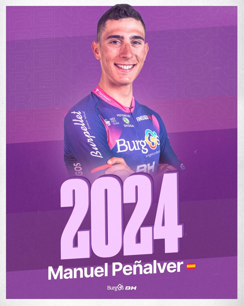 Manuel Peñalver ha renovado su contrato con el Burgos BH hasta 2024. El ciclista torrevejense de 24 años sigue creciendo como ciclista y cumplirá su sexta temporada en las filas del conjunto que dirige Julio Andrés Izquierdo. En esta etapa ha acumulado más de 40 top-10 gracias a su punta de velocidad. Además, el alicantino ha acariciado la victoria en pruebas como la Volta a Cataluña, el Tour de Langkawi, la Volta al Alentejo o el Tour de Turquía. El día que más cerca estuvo lograr su primer triunfo con el equipo tuvo lugar a principios de 2022, cuando terminó segundo en su ciudad natal, Torrevieja, en la cuarta etapa de la Volta a la Comunitat Valenciana. Esta temporada ha tenido un calendario menos cargado de pruebas en el inicio de año, obteniendo sus mejores resultados a partir de marzo. Fue octavo en la Cholet-Pays de la Loire, tercero en una etapa del Région Pays de la Loire Tour y sumó hasta seis top-10 entre el ZLM Tour y los Boucles de la Mayenne. Su presencia en La Vuelta 2023 podría ser importante en su evolución. De momento está trabajando en Sierra Nevada y todo apunta a que estará en la salida de la carrera española que partirá el 26 de agosto desde Barcelona y finalizará el 17 de septiembre de 2023 en Madrid.