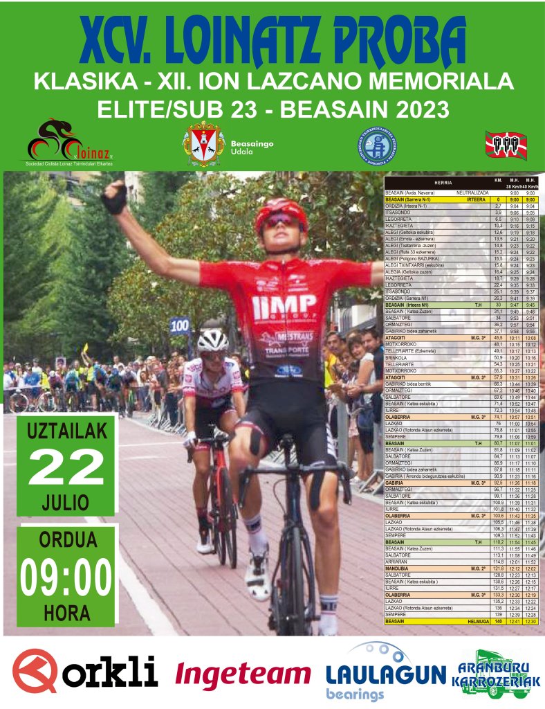 El sábado se disputa en Beasain la XCV Loinatz Proba – Memorial Ion Lazcano de Beasain. Las ascensiones encadenadas a Atagoiti, Olaberria, Gabiria y Mandubia marcaran el devenir de una carrera que cuenta con 137,3 kilómetros de recorrido y partirá a las 9.00 horas.